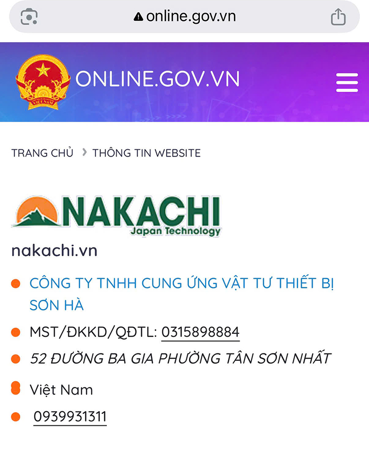 Nakachi thực hiện đầy đủ và tuân thủ các quy định về buôn bán hàng hóa Online. Dưới đây là thông tin về việc đăng kí thông báo tên miền đến bộ công thương.